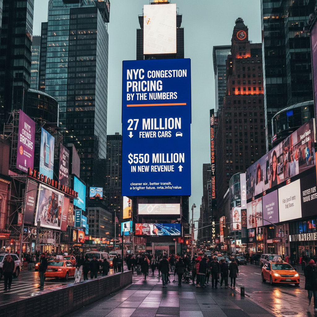 NYC congestion pricing by the numbers proves one thing clearly — smart policy backed by data works. With 27 million fewer cars, $550 million in new revenue, cleaner air, safer streets, and better transit, the initiative is reshaping New York City for the better.